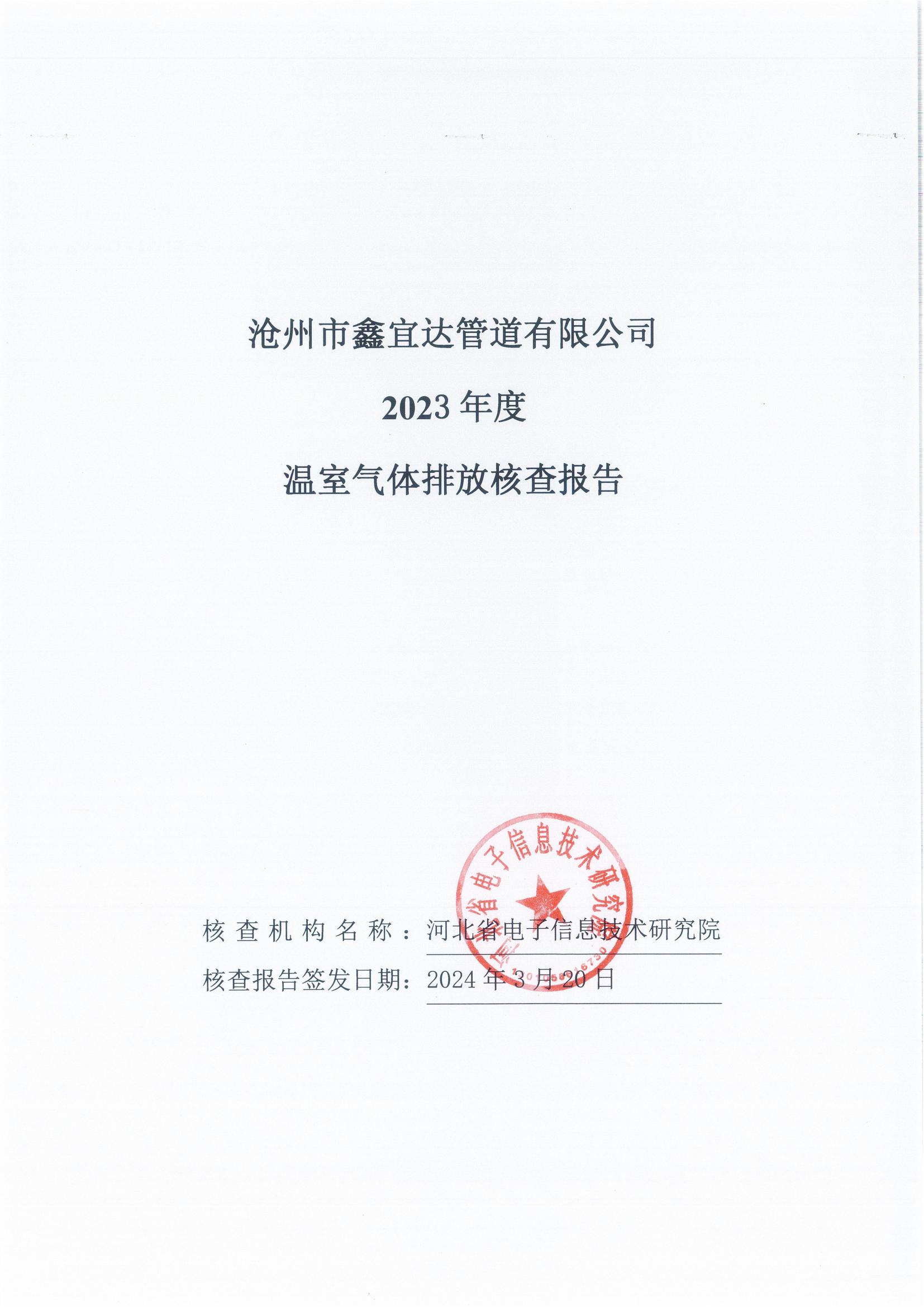滄州市鑫宜達(dá)管道有限公司2023年度溫室氣體排放核查報(bào)告